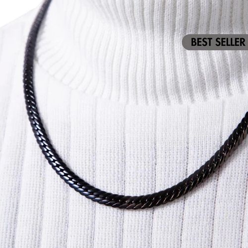 The Tucano Chain offered by Black Mamba Jewellery is a stylish and sleek option for men. This chain is characterized by its flat design and is made of high-quality brass material with a black plating finish, which gives it a bold and edgy look.
